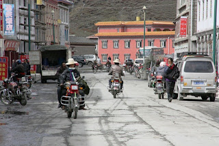 בדרך מנזר טיבטי בעיירה קטנה, ובעיירה טיבטית אופניית